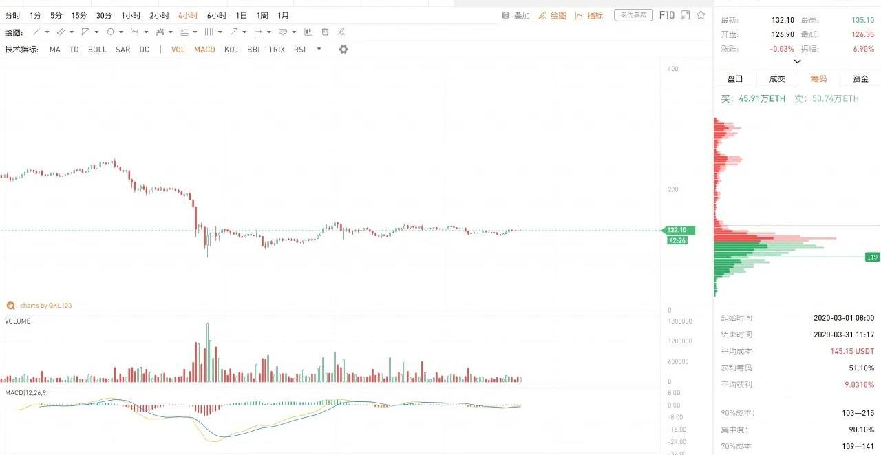 ETH弱势联动BTC,近期的收敛走势更为明显。昨日最低探至123美元,今日并未站稳135美元,弱势联动BTC为主。三、现货BCH行情
