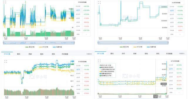 加密货币诞生之初,交易市场便存在大量庄家拉盘的事例。《华尔街日报》曾进行研究,结果显示,当时市场上有数十个交易群组在几家最大的加密资产交易所操纵加密货币价格。前文提及的四个领涨币MFG、BTX、PPS、XUN,近一周的涨幅和上涨日期并无明显相同,很难判断是受到比特币价格上涨影响或是环境、政策、产业等宏观因素影响。
