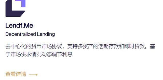 2019年9月,dForce首个由社区开发者主导开发的去中心化借贷协议Lendf.Me正式发布。据其官网介绍,Lendf.Me是基于全球资金池模式的去中心化货币市场,可以为用户提供灵活、便捷的理财和贷款服务,其中包括: