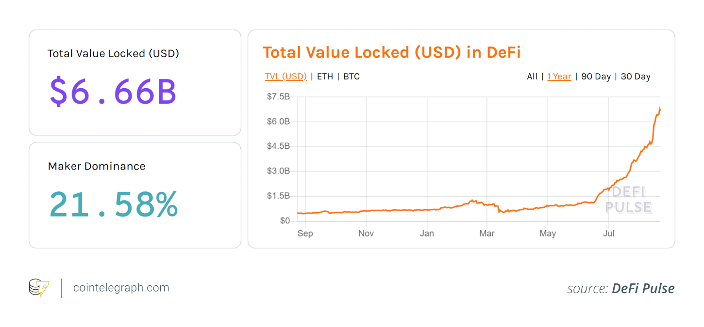 当市场的增长速度与DeFi市场一样快时,市场可能难以保持平衡。当被问及DeFi是否正在鼓吹泡沫时,Frost Brown Todd?有限责任公司的律师John Wagster告诉Cointelegraph:“ DeFi锁定的总价值从5月份的大约10亿美元迅速增加到今天的60亿美元,当然这可以被视为一个市场过热的迹象。”但是,他还表示:“收益耕作(流动性挖矿)的真正创新概念来自于聪明的工程,这些工程似乎吸引了寻找新机会的市场参与者。”