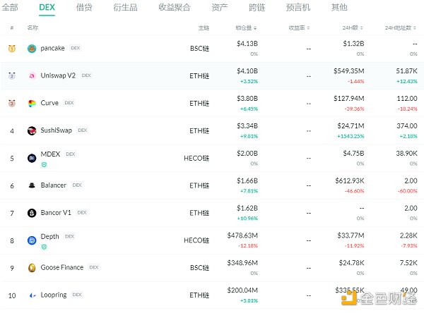 过去24小时去中心化交易所的交易量数据来源:Debank